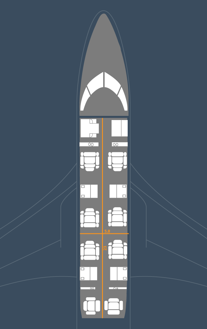 Forward Crew Lav Forward Galley Forward Cabin Seating Area Mid Cabin Seating Area Aft Baggage Aft Cabin Seating Area Take A Virtual Tour